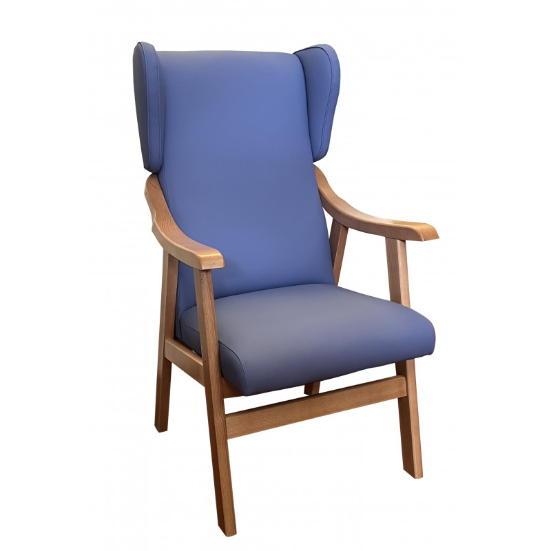 Sillon geriatrico con orejas, fabricado en madera de haya con tapicerias santiarias impermeables. Colores de tapiceria y madera a elegir segun carta Disponible sin orejas